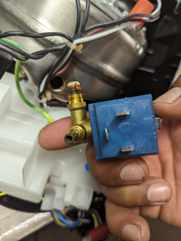 Das Gewinde am neuen Magnetventil mit „Schraubenfest/ sicherung“ einlassen. Magnetventil in den Boiler fest reinschrauben. Zange benutzen. Ventil montieren, Stecker einstecken, wieder alles in die korrekte Position bringen. Vor allem das Bedienteil löst sich gerne. Immer mit Geduld arbeiten. Nicht anfangen schneller zu arbeiten, weil es geht dem Ende zu. Langsam, doppelt schauen das man nichts vergisst. Spart sehr viel Nacharbeit und Fehler. Jetzt den Deckel drauf, die Schrauben rein und…….Yes, es funktioniert.