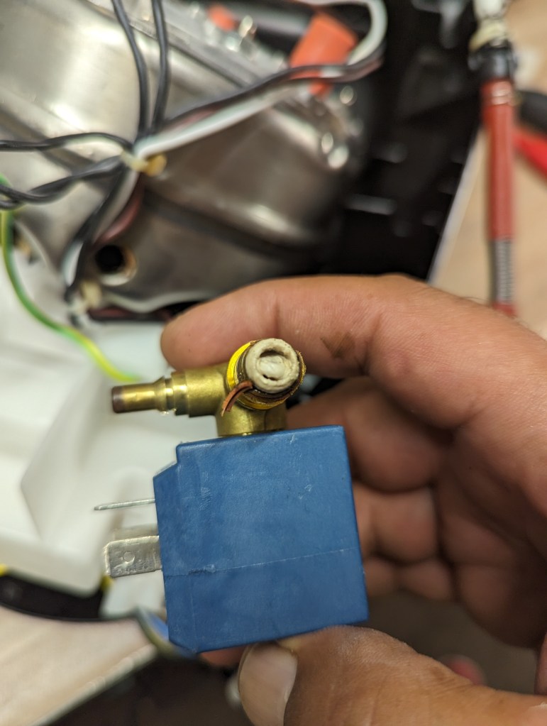 Dieses Teil nicht versuchen zu reinigen. Funktioniert nicht. Sollte getauscht werden. Am Besten mit der genauen Type welche am Bodendeckel steht und fängt mit GV+ Zahlen an, das komplette Magnetventil inkl. Anschlussventil im internet suchen oder beim Fachhändler bestellen. Das Teil kostet ca. € 15- 25. Beachtet das es genau so aussieht wie ihres (ein Bild machen). Es gibt verschiedene Modelle und verschiedene Anschlüsse.