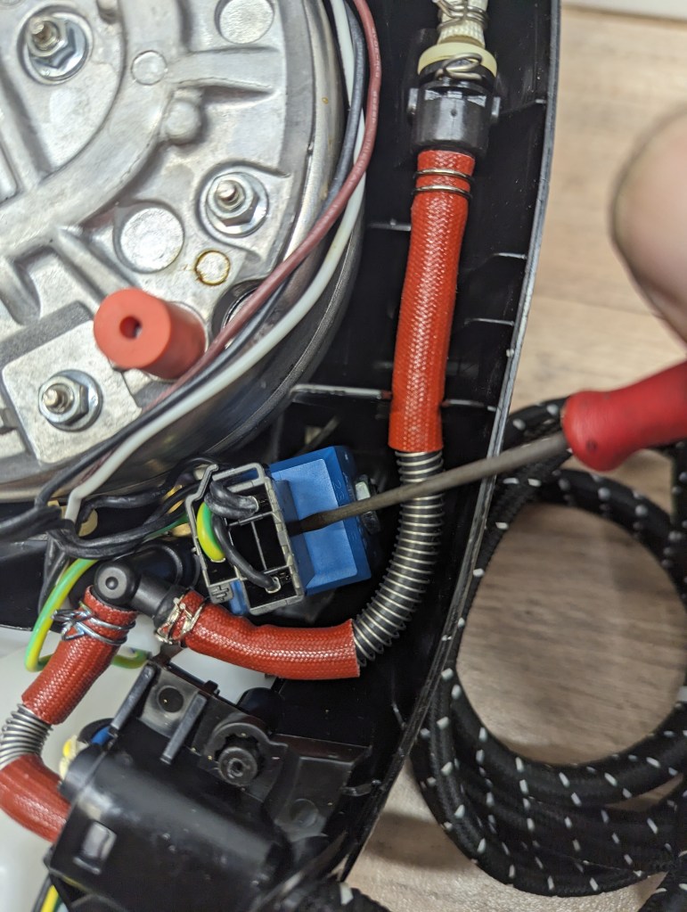 Nun den Deckel wieder drauf, Festschrauben. Bitte beim Deckel immer rundherum schauen das nicht ein Kabel eingequetscht wird, oder evt. rausschaut. Wassertank rein und los gehts mit dem Ausprobieren. Nun sollte es wieder rausdampfen. Fehler behoben und Gerät läuft wieder.
