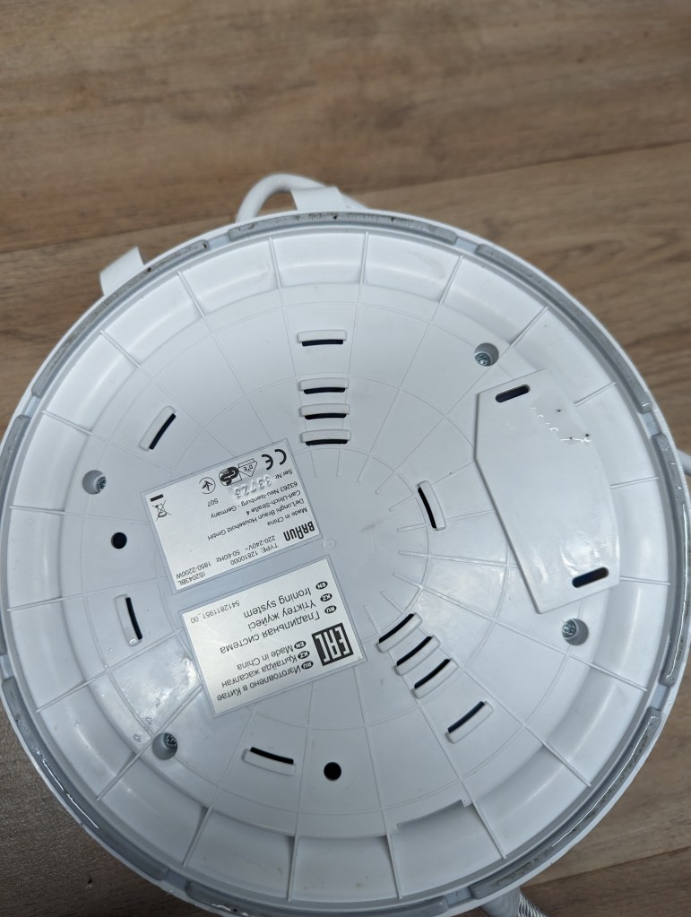 Wir sehen uns hier einmal eine Braun Dampfbügelstation an. Beim Hochheben fällt mir sofort auf, daß dieses Ding sehr leicht ist. Oje, denke ich mir. Das Teil hat sicher keinen Boiler. Zu dem weiter unten. Im selben Atemzug, bevor ich es Teste und danach warten muß bis es abkühlt, öffne ich es vorher noch.