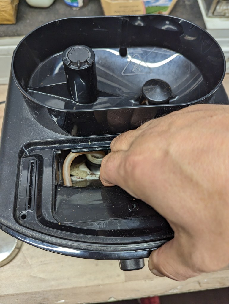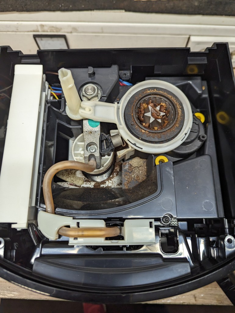 Im großen und ganzen würde diese „Öffnung“ reichen um die Wartung durchzuführen. Weiter unten zeige ich Euch wie man das komplette Gehäuse öffnet. Wenn jemand mag, wegen Reinigung usw. oder wenn man die Pumpe oder Elektronik tauschen sollte. Alles weitere ist einfach zu teuer.