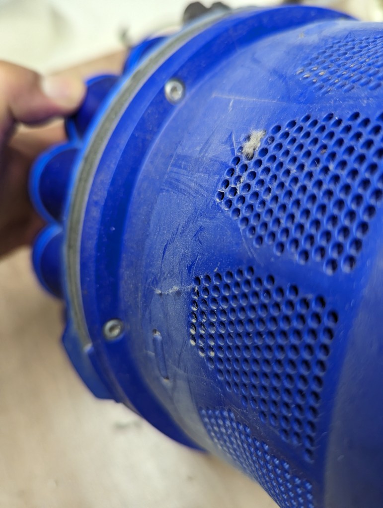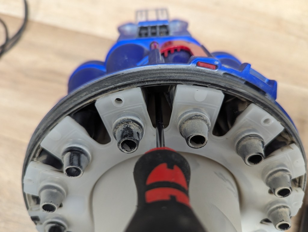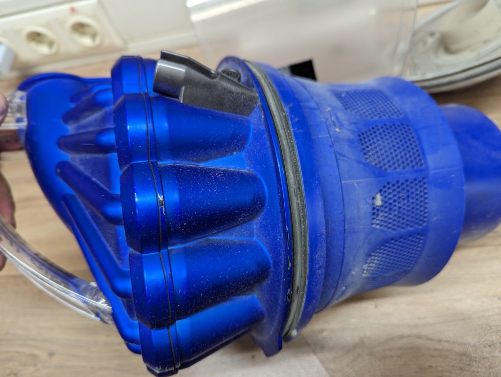 Nach kurzer Überprüfung, konnte man den Fehler sofort sehen. Dyson arbeitet mit sehr vielen „Düsen“ oder Luftlöchern welche nach einiger Zeit verstopfen. Das ist ein leidiges Thema bei Dyson, deshalb verstehe ich den Slogan nicht: